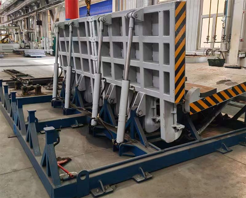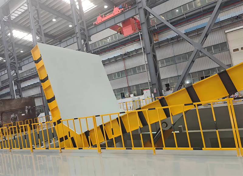 這款160噸翻轉(zhuǎn)平臺采用先進設計,解決了超大噸位和尺寸物料翻轉(zhuǎn)中的安全性與穩(wěn)定性難題。平臺尺寸為9500x5500mm+5500x5000mm,支持雙向翻轉(zhuǎn)