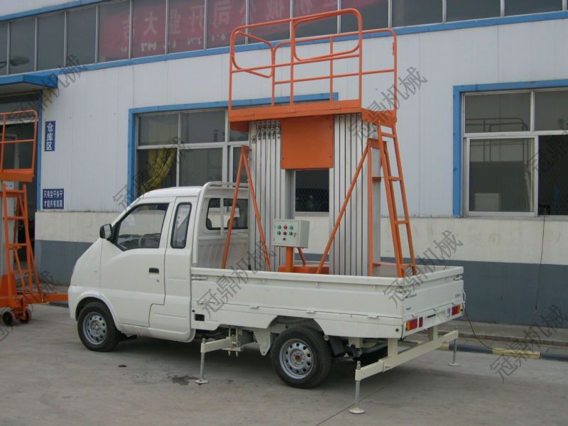 車載式升降平臺(tái)是由升降平臺(tái)和電瓶車或汽車配套改裝的高空作業(yè)設(shè)備。