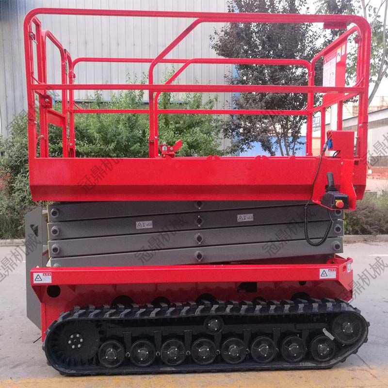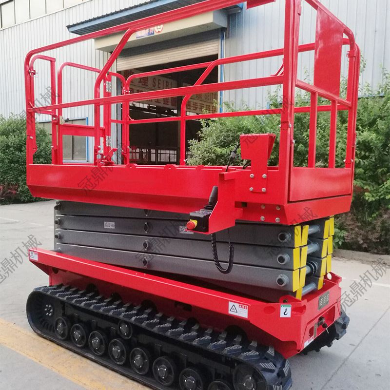 履帶式液壓升降平臺(tái)采用加重底盤(pán),工作時(shí),不需要支腿,在升降機(jī)升起后,不需要不把升降機(jī)收起即可行走,極大的提高了工作效率,同時(shí),它的履帶式車輪,增加了與大地接觸的面積,在野外泥濘道路上也可行走和工作,是石油勘探、野站部隊(duì)通信線路安裝施工等野外高空作業(yè)的理想設(shè)備。