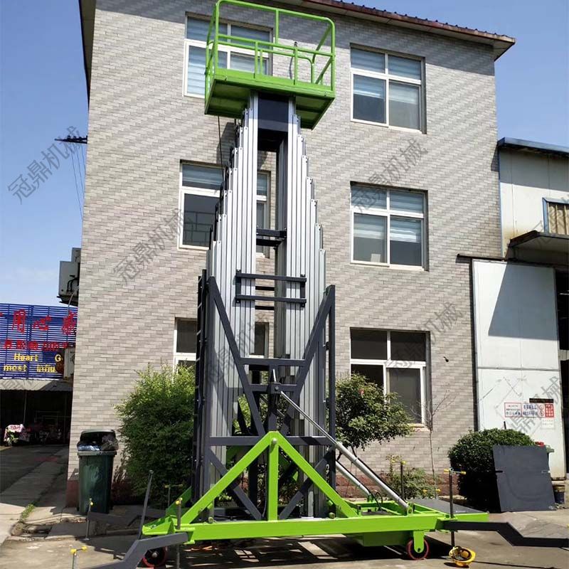 整體采用高強度鋁型材精制而成由于型材強度高,具有造型美觀、體積小、重量輕、結(jié)構(gòu)緊湊、移動方便、升降平臺平穩(wěn)、操作方便、安全可靠等優(yōu)點。令高空作業(yè)更方便快捷,能夠快速、慢速行走,可調(diào)速,是現(xiàn)代企業(yè)高效安全生產(chǎn)之理想高空作業(yè)設(shè)備。主要產(chǎn)品分為單立柱鋁合金,雙立柱鋁合金,三立柱鋁合金、四立柱鋁合金。